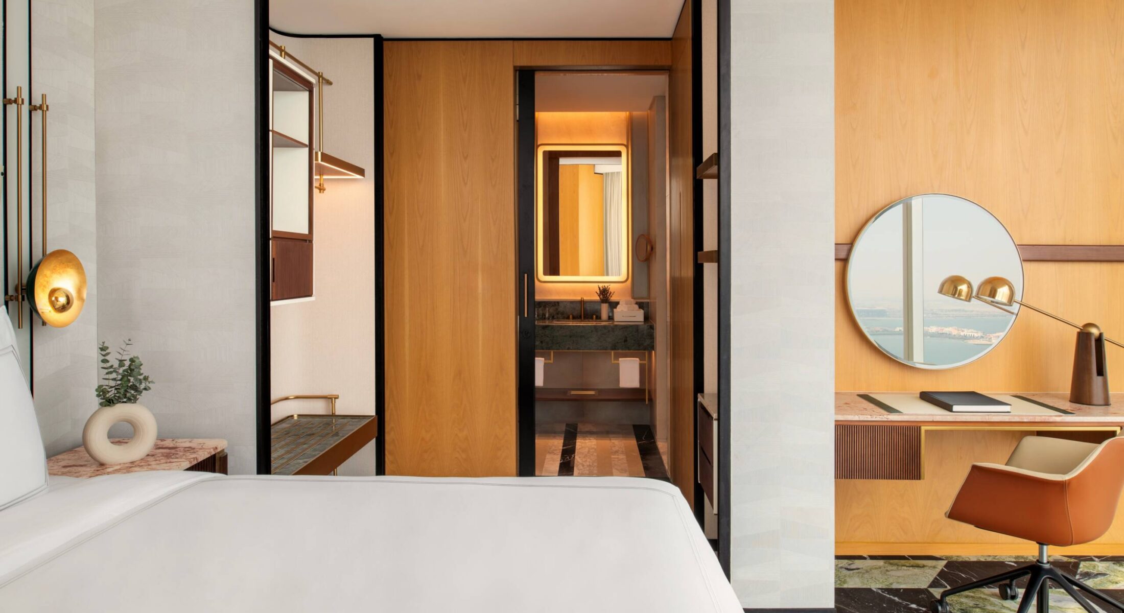 Blissful sleep comes naturally in the bedroom with its snow-white king bed, blackout curtains and adjustable temperature controls. And in the marble bathroom, a walk-in shower and alpine-inspired Pürovel amenities inspire your daily pampering ritual. Looking for an even more indulgent experience? Ask the concierge to make a reservation for you at Pürovel Spa.