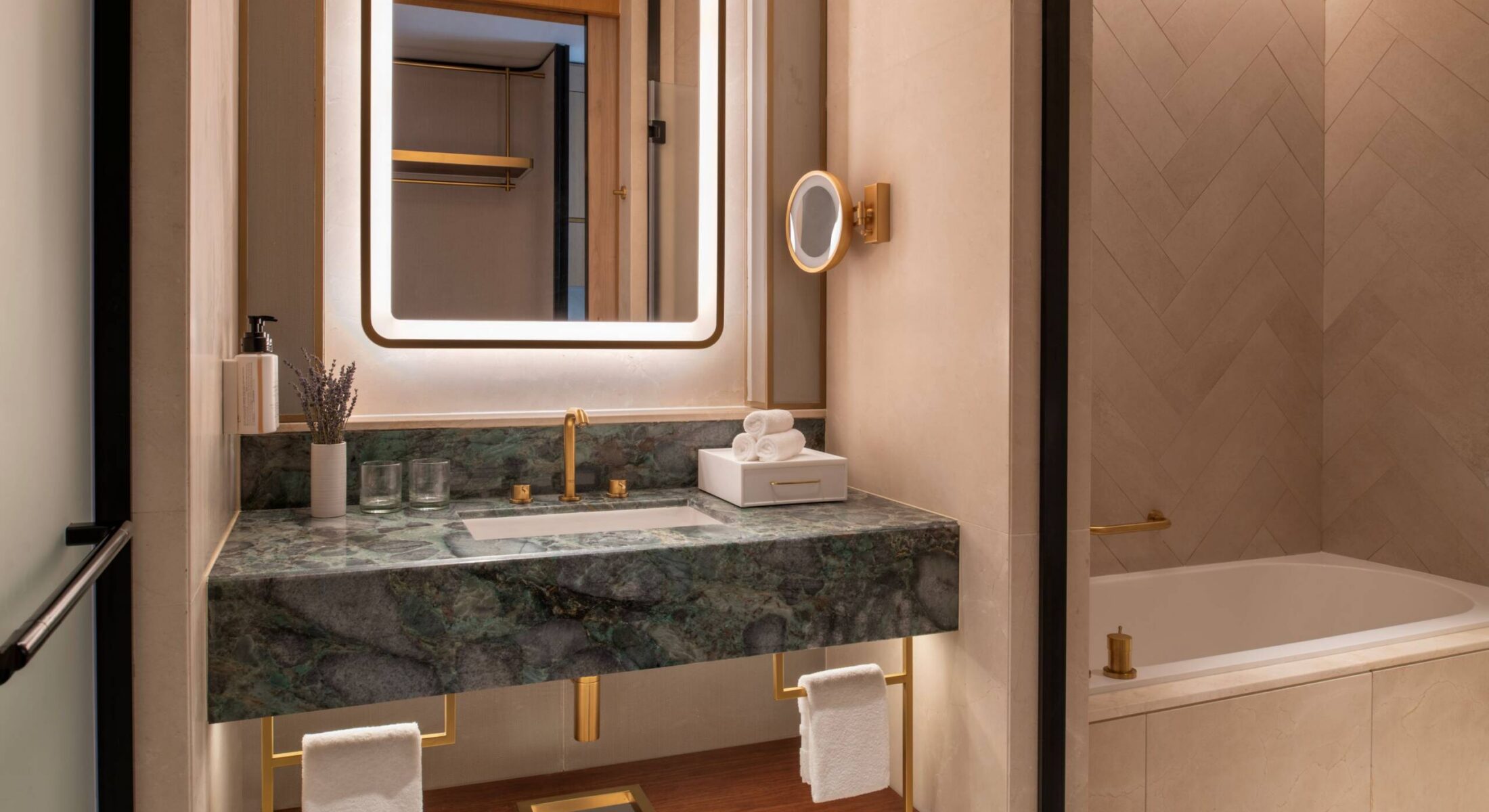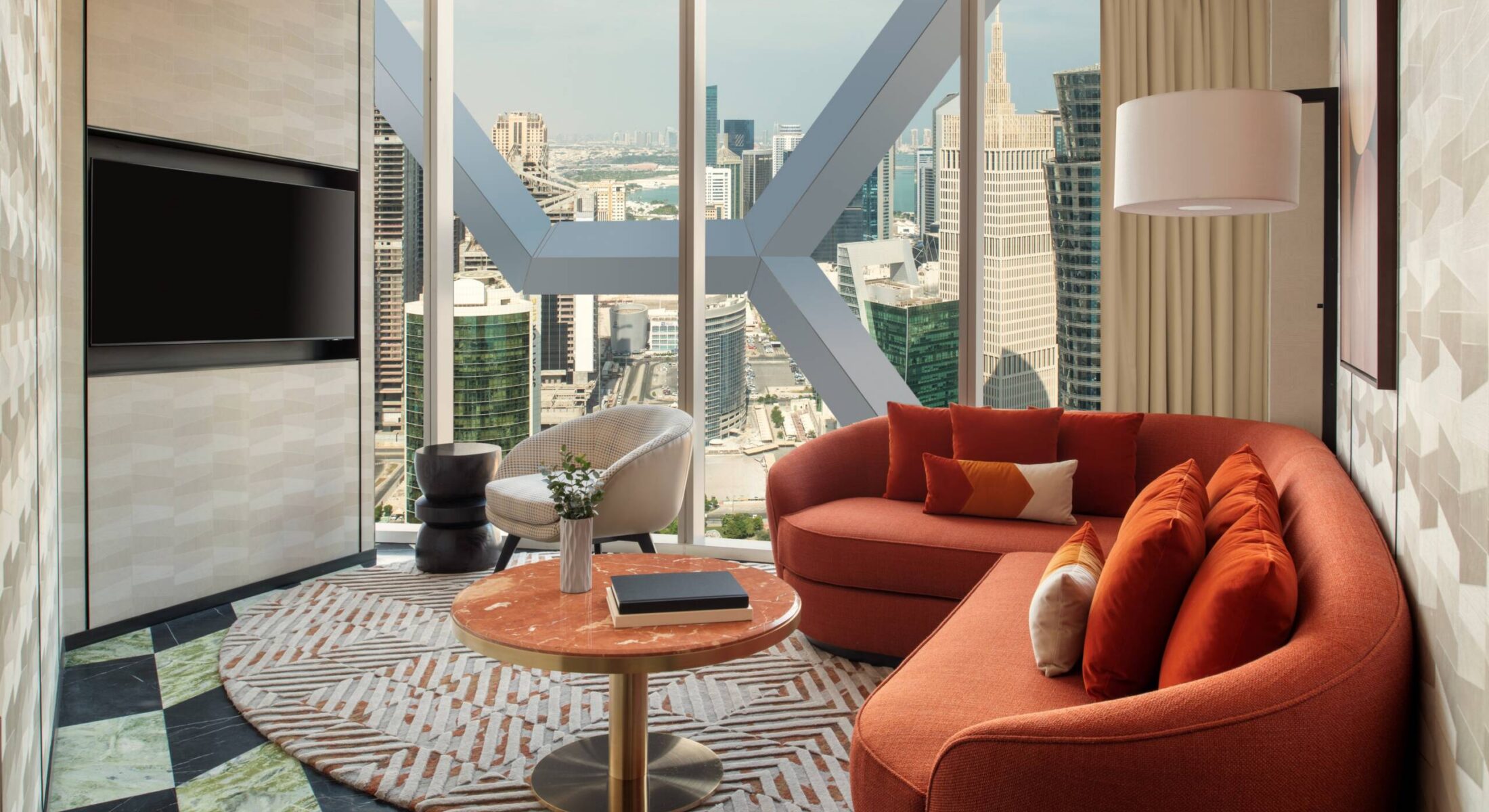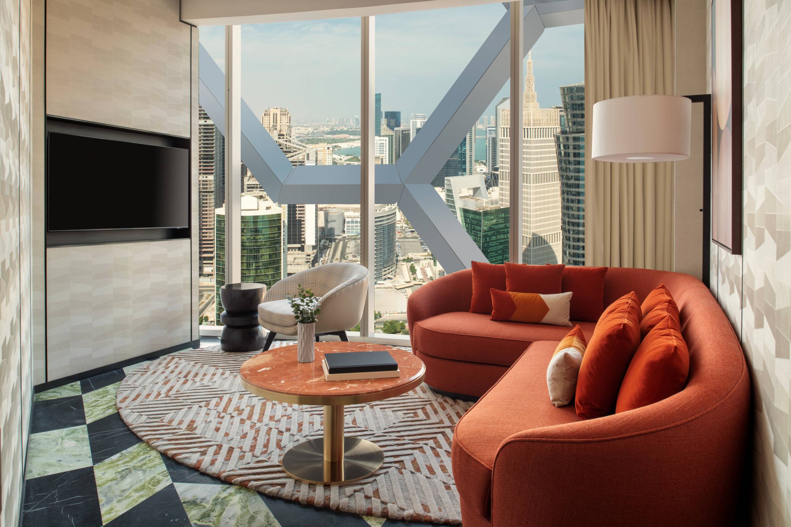 Everything you need for comfort and well-being, with separate living and dining areas framed by upper-level views of the Doha skyline. Welcome to your Swiss Junior Suite—a sanctuary in which to work, play and dream.