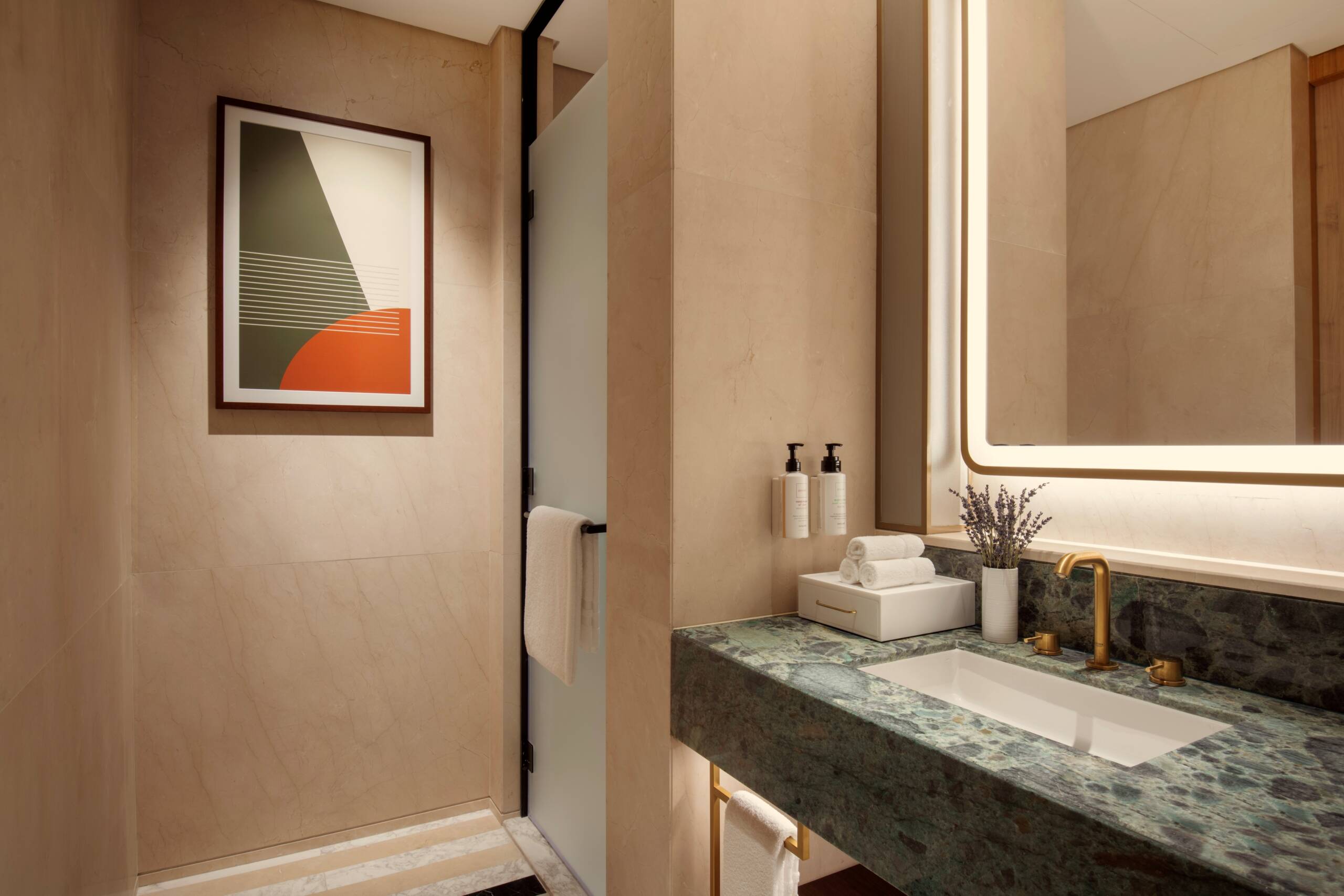 These mesmerising vistas provide a magical backdrop for every unforgettable moment, whether you’re lounging in the separate living room or preparing a feast in the fully equipped kitchen. With a king bed and two twin beds, this apartment is made for families. It’s also ideally suited to every other kind of trip, with a guest bathroom for entertaining and a workspace and high-speed Wi-Fi if you’re in Doha on business.