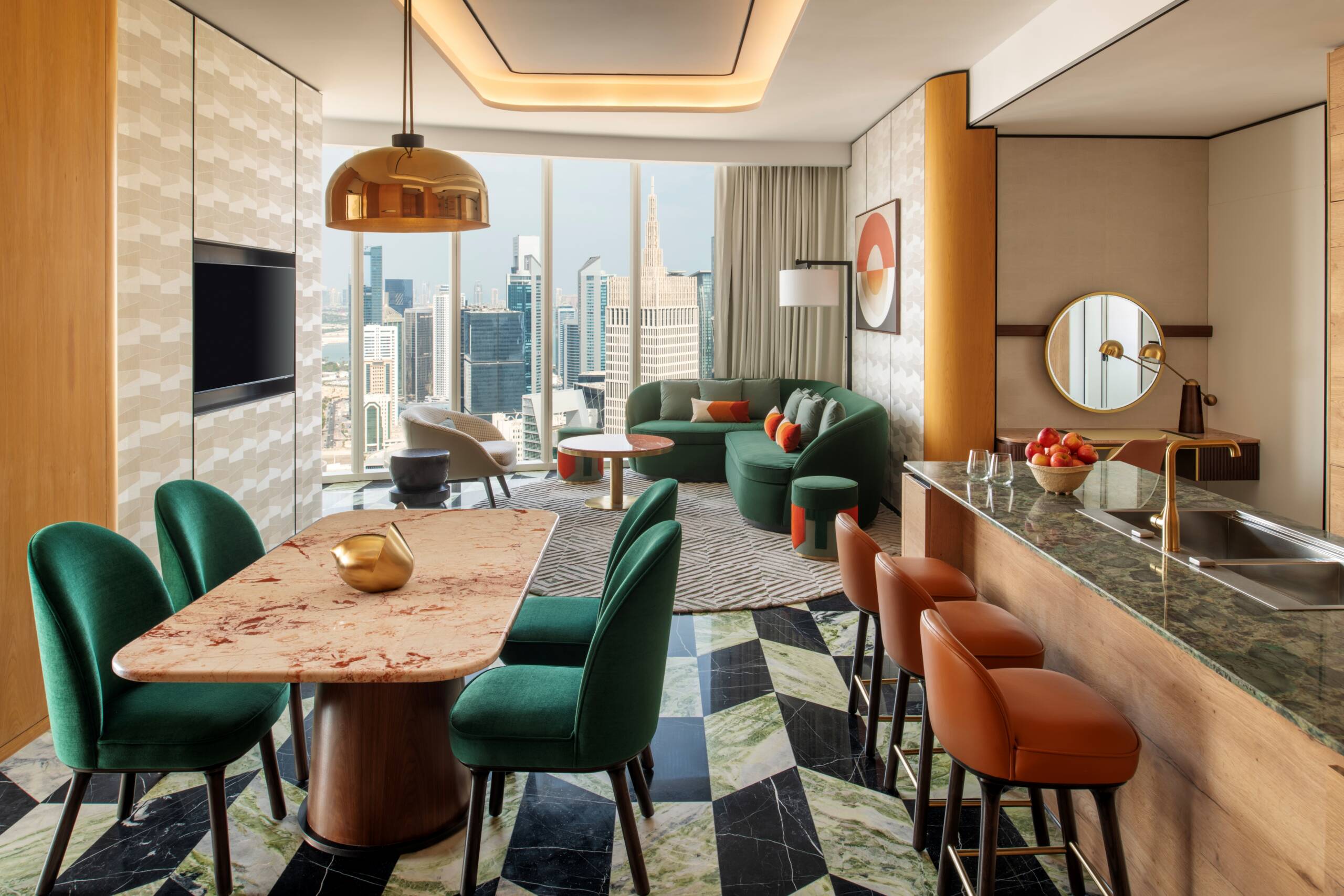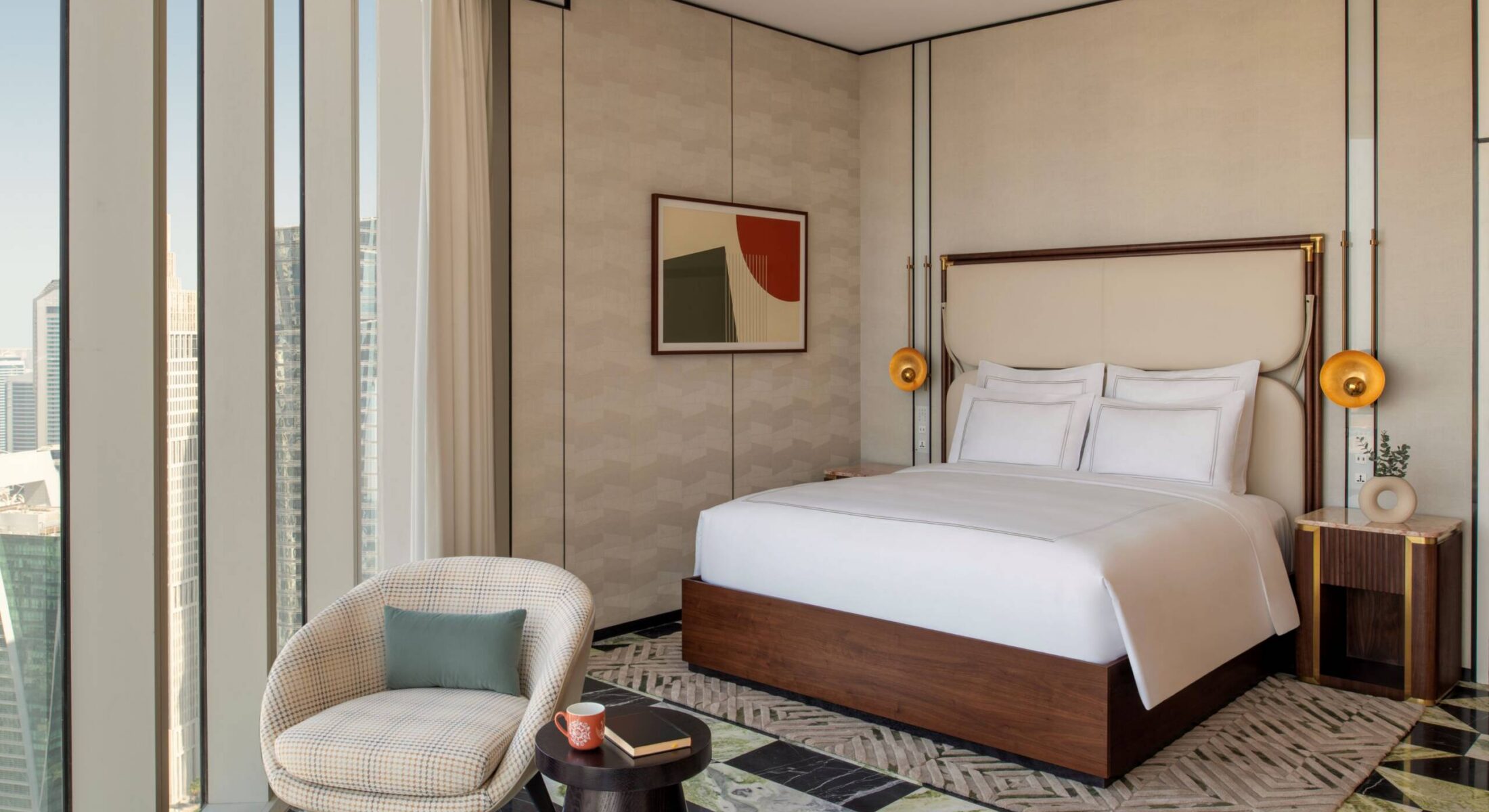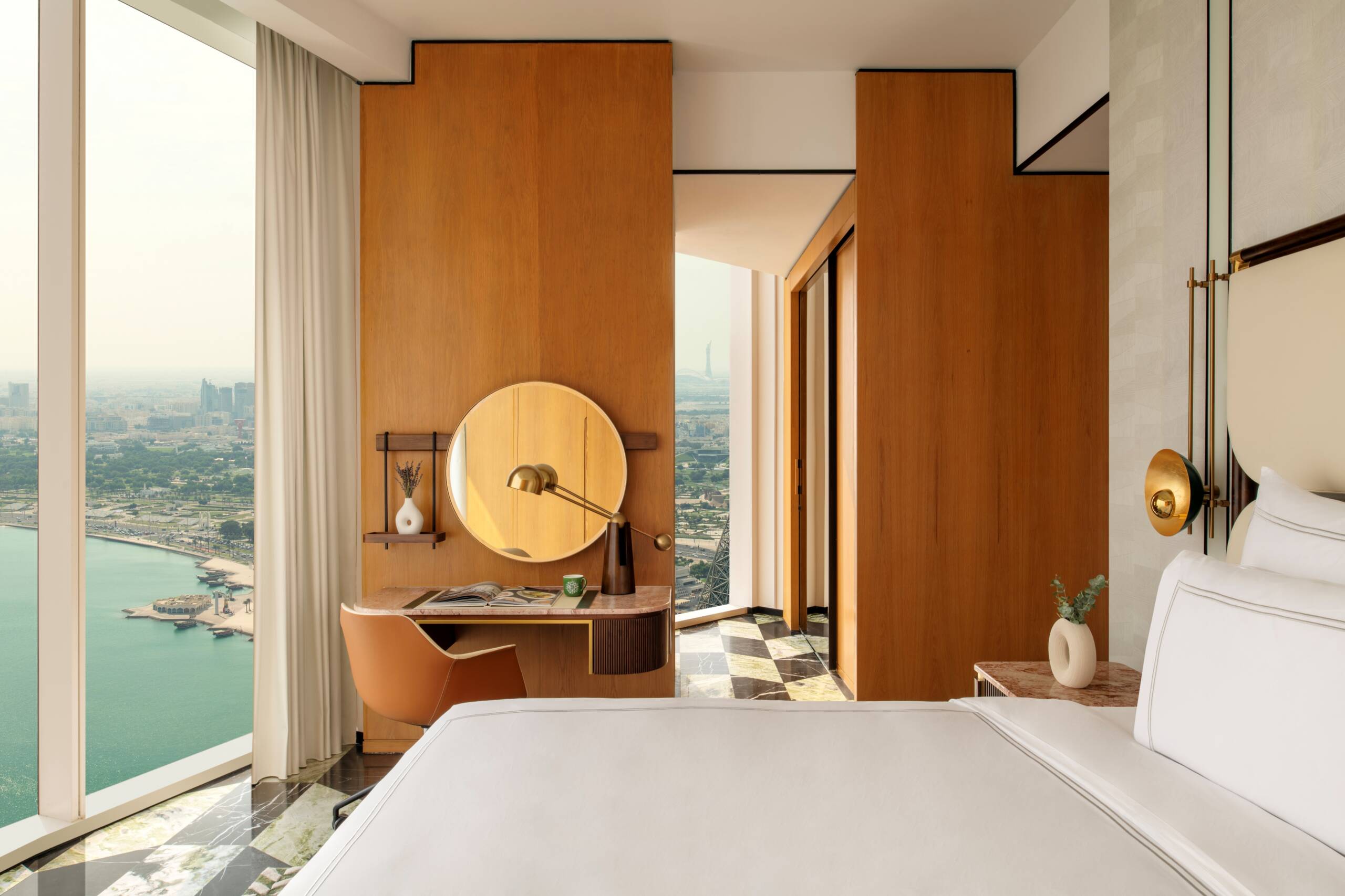 On the highest floors of the hotel perch our Two-Bedroom Signature Apartments. Each one is a masterpiece of intuitively conceived space inspired by Swiss quality and defined by uniquely Qatari Corniche views.